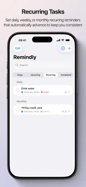 Se tem um conjunto de tarefas que costuma fazer de forma recorrente, com a Remindly não precisa de estar sempre a marcar lembretes: todos os hábitos diários avançam automaticamente. Além disso, as notificações inteligentes adaptam-se aos seus hábitos, aprendendo os seus padrões de conclusão de tarefas.